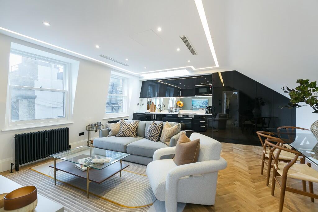 Newly refurbished top-floor two-bedroom serviced apartment in sought-after Marylebone. Bright interiors with skylights, surrounded by top restaurants, shops, landmarks, and excellent transport links.