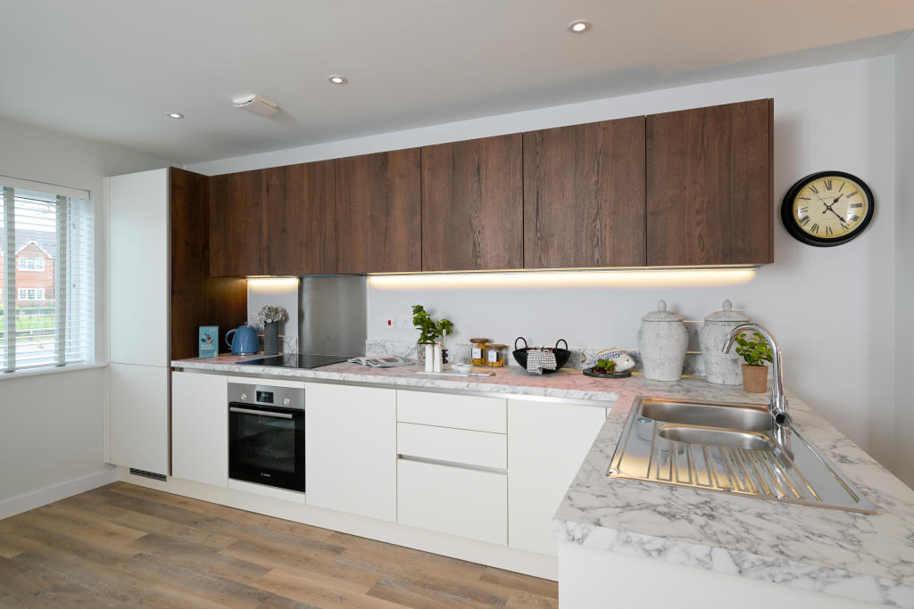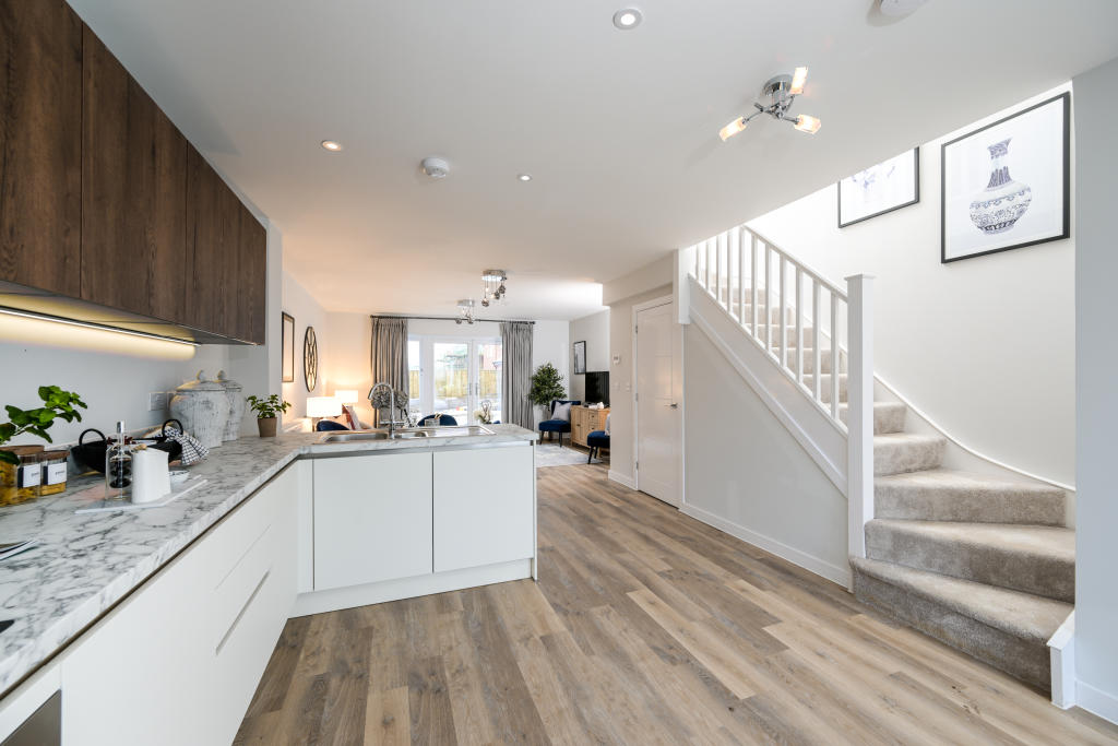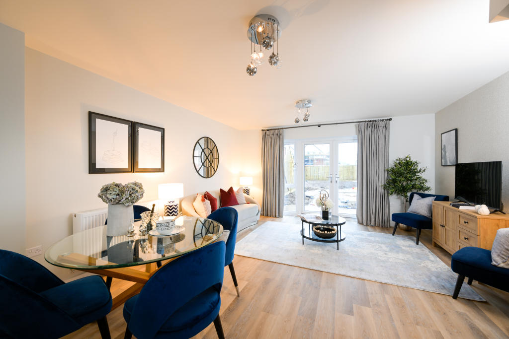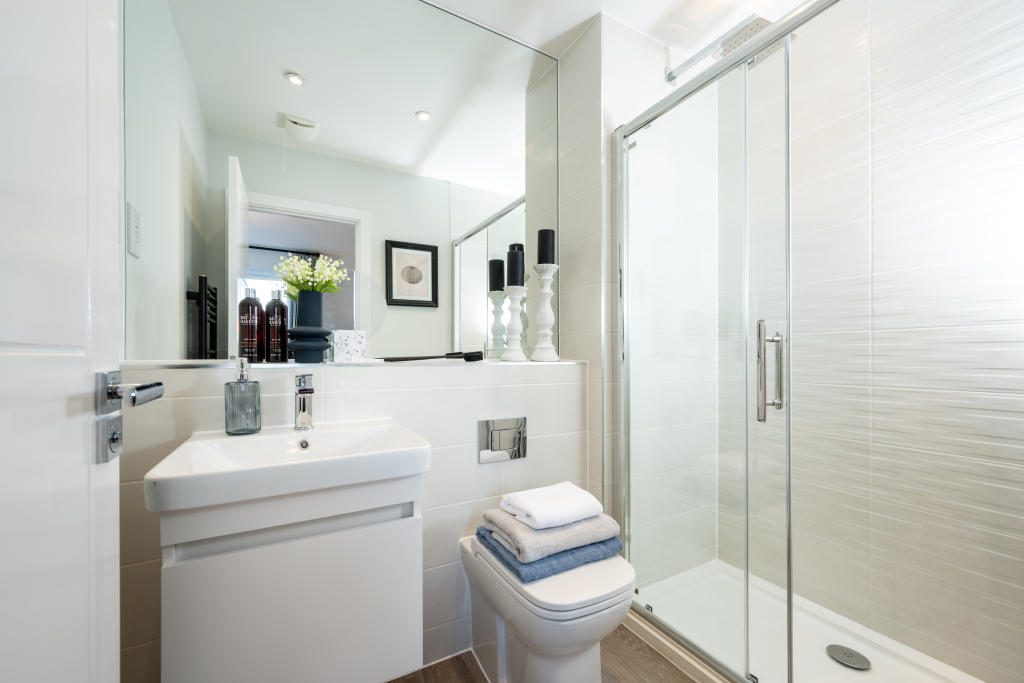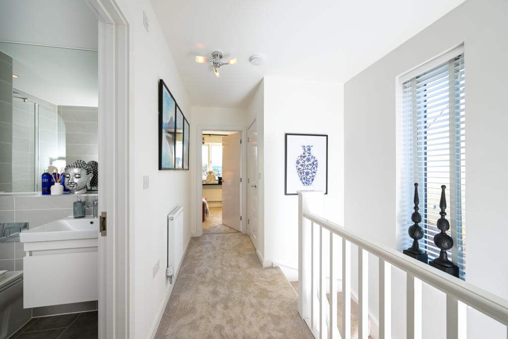 The show home is for sale! This 2 double bedrooms, 2 bathroom semi-detached home with driveway is ready to move in and comes with flooring, light fittings, curtains and blinds, fitted mirrors and a full range of integrated appliance.