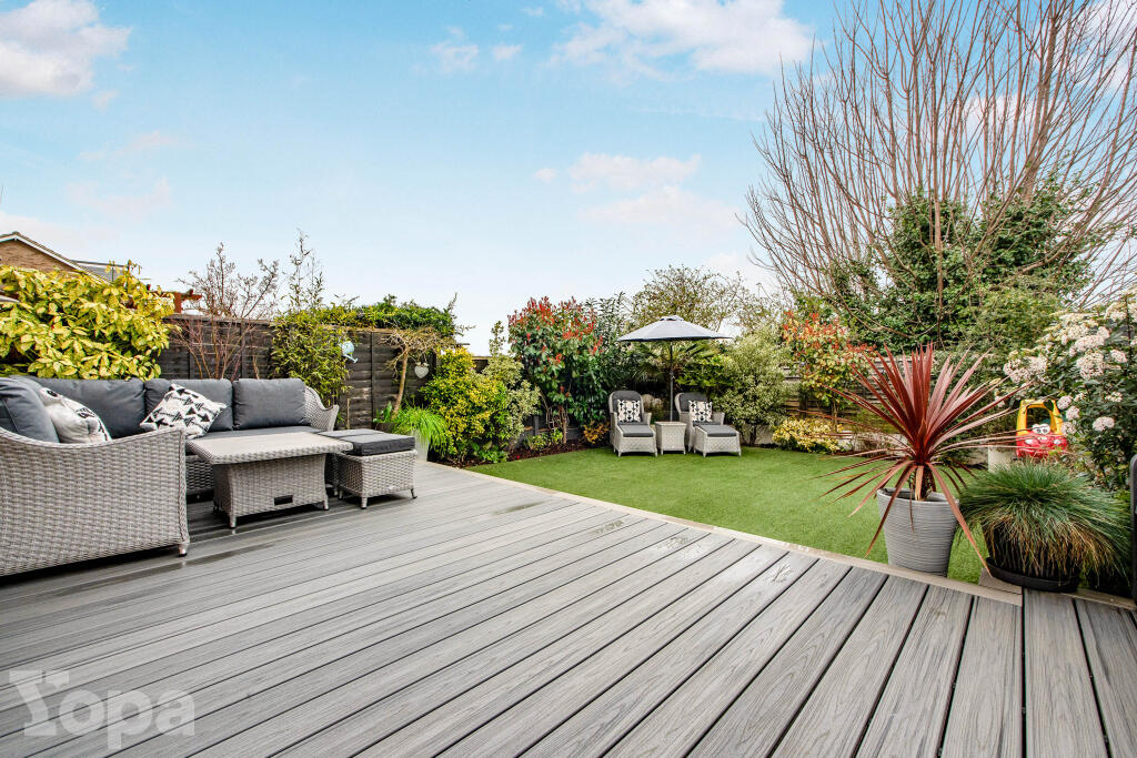 The property includes a substantial garden with a decked area, providing ample outdoor space. The garden is well-maintained, adding to the overall appeal of the property.