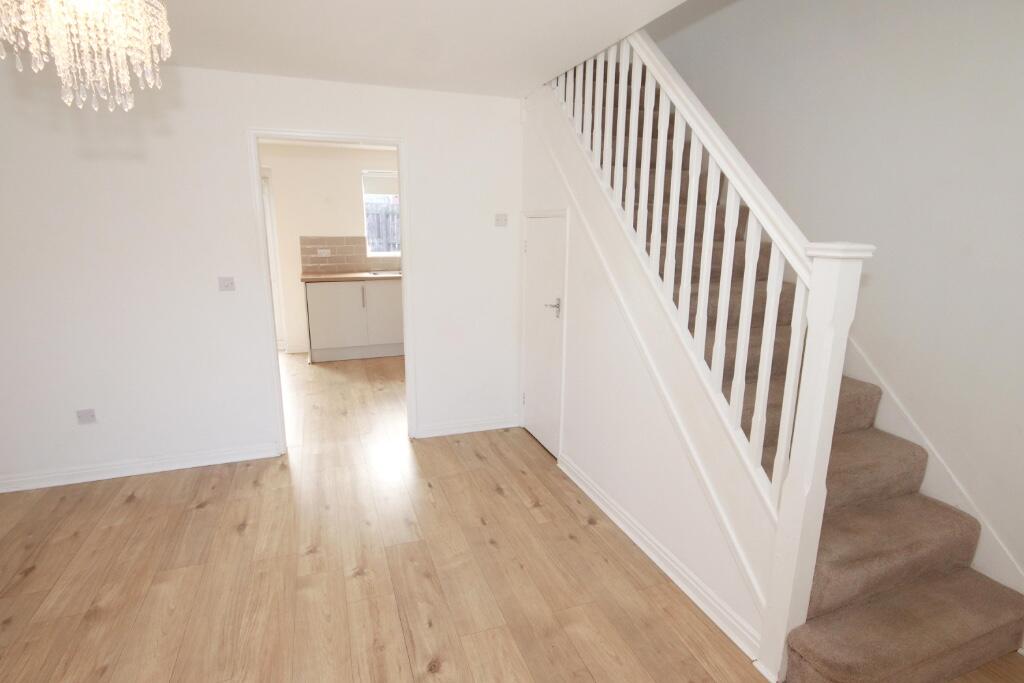 This well-presented three-bedroom end-terrace property offers modern living in a popular and convenient residential location. The home opens with an inviting entrance hall leading to a useful downstairs WC and a bright, comfortable living room.