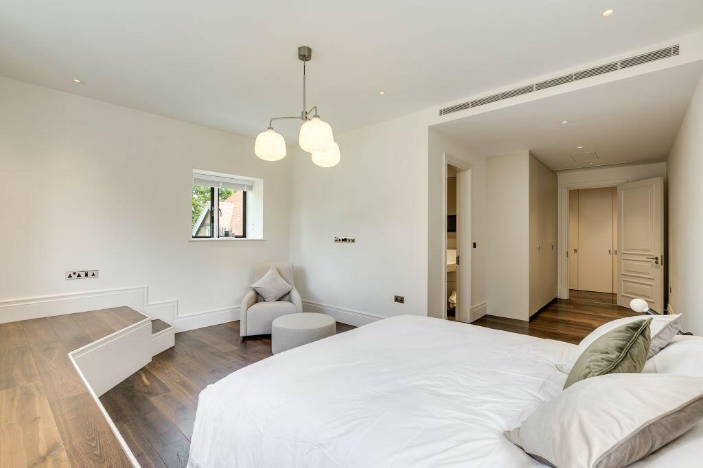This property is a beautifully presented apartment located in the prestigious Bishops Avenue, London. The images highlight a high-end renovation or new build, featuring modern finishes, luxurious fixtures, and a spacious layout. The inclusion of amenities such as a swimming pool and cinema enhances the property’s appeal. The location within Hampstead Garden Suburb is highly desirable and benefits from proximity to excellent schools and green spaces, which is a strong point in it’s favour. However, the lack of precise plot size information prevents a more complete evaluation of the property’s overall value, and comparison to other properties listed without sqft data hampers a decisive evaluation of the asking price. The photos suggest a good-sized garden area, adding to the property’s desirability. Overall, this property presents a strong case for a buyer seeking a luxurious and well-located home in a prime London area. More specific data concerning land size and a more robust data set from comparison properties would support a more definitive analysis and higher scores in certain categories.