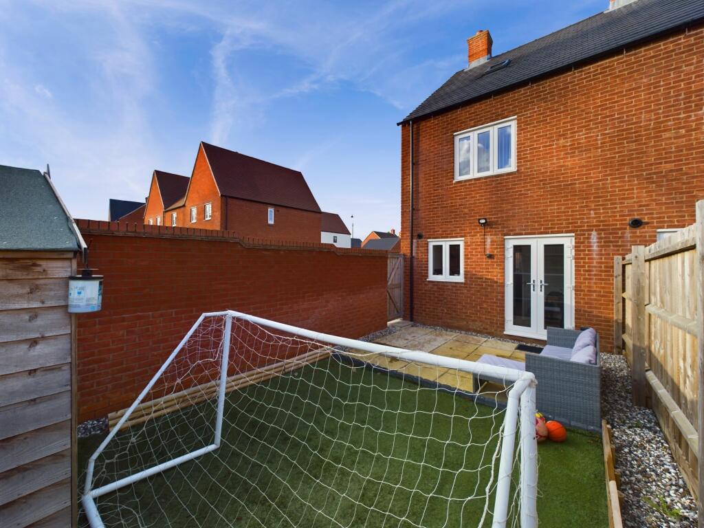 Three storey semi-detached family home on the Towcester Racecourse Estate. Three double bedrooms, ensuite to master, bathroom, kitchen/diner, sitting room and cloakroom. Fully enclosed south facing garden with two allocated parking spaces and enjoying views of the allotments to the rear aspect.