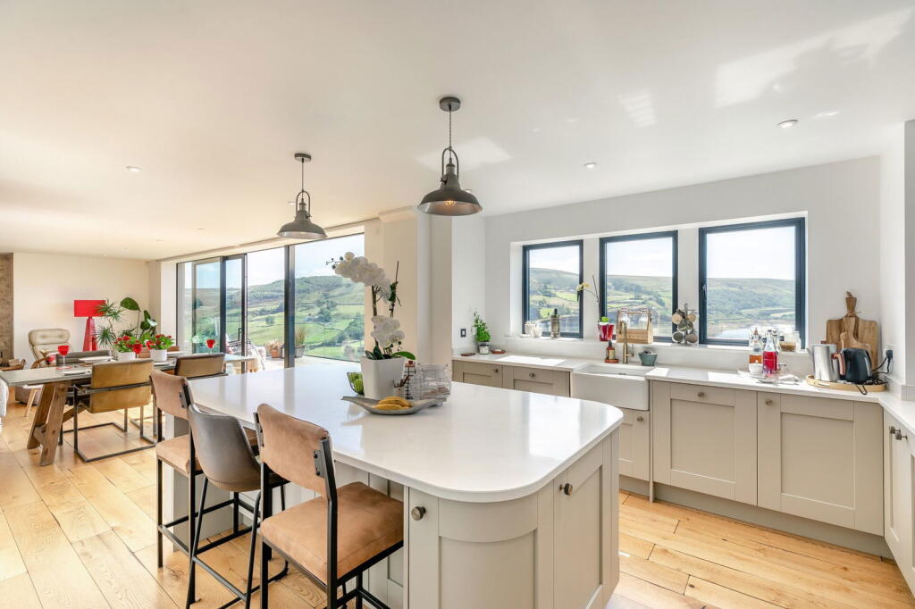 Set within stunning grounds approaching ¼ of an acre, commanding amazing cross valley views, Millbank is a stunning, individually designed home built by an award-winning builder. This contemporary styled property offers spacious versatile living accommodation, private south facing garde...