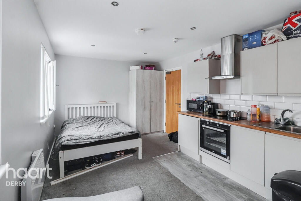 This is a one-bedroom flat located in Derby City Centre. The property appears to be in good condition, with a modern interior. The flat is located close to local amenities, schools, and transportation links. The asking price of £65,000 represents good value for money, given the location and condition of the property.