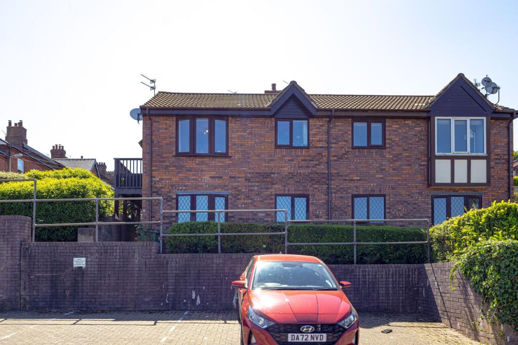 A first floor apartment, located close to GFCH & PVCu DG. Greenbank Railway Station. Entrance hall, living room, kitchen, double bedroom with fitted wardrobe, bathroom. Two parking spaces.
