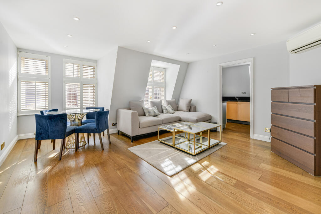A well presented one bedroom one bathroom second floor apartment with high ceilings and large south-facing reception windows and air conditioning throughout. Located at the preferred end of Maddox Street, just off New Bond Street.