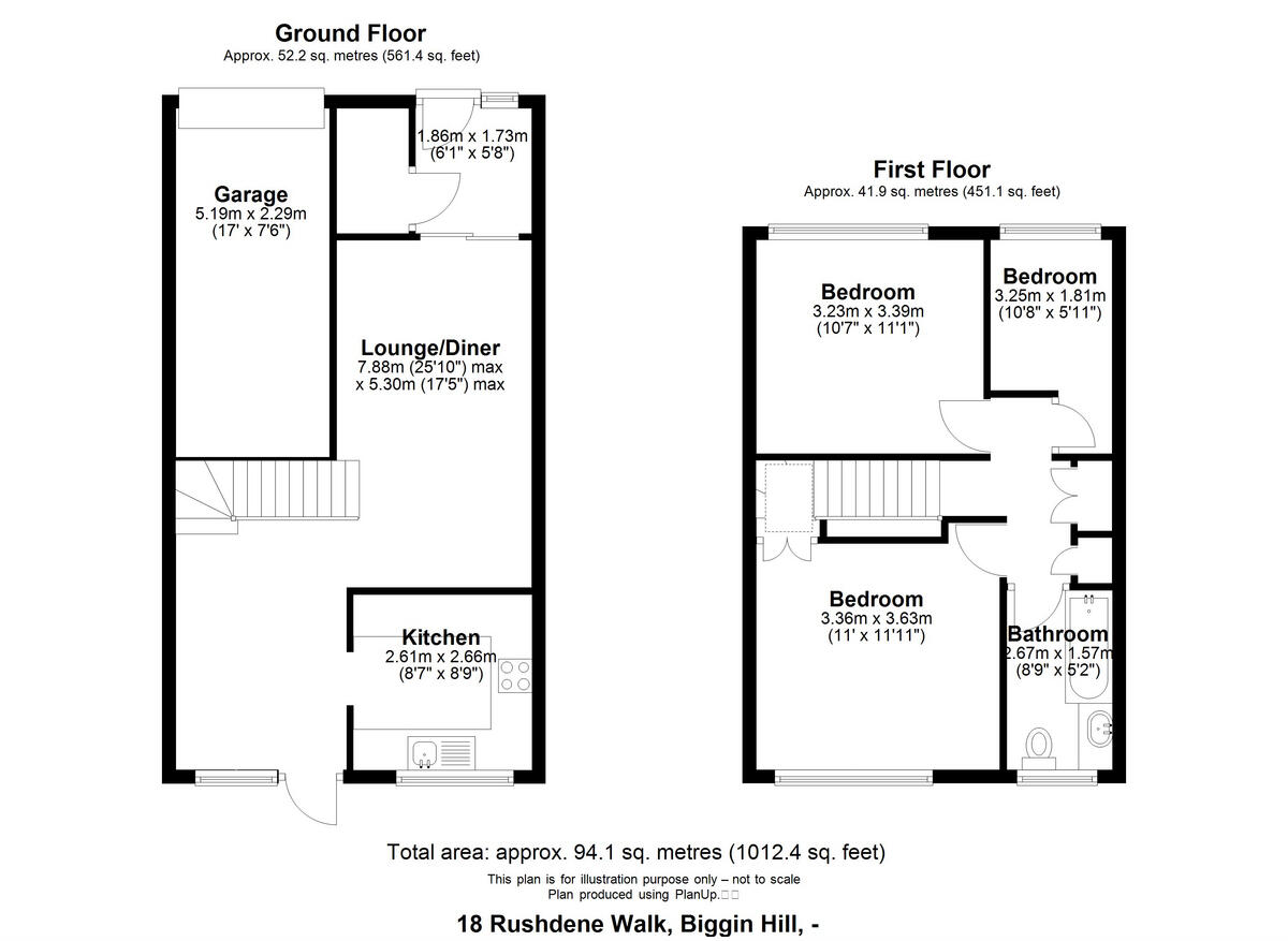 This property is a 3-bedroom end of terrace house located in Biggin Hill, Bromley. The house is situated on Rushdene Walk and benefits from a good-sized garden. While the property shows its age in the images, it appears to be well-maintained and in reasonable condition. The list price of £450,000 is significantly lower than the average price of £792,500 for the area, making it potentially good value for money, especially considering the garden. However, it is important to note that the average price per square foot in the area is higher than what this property offers, and nearby comparable properties show a range of prices. The proximity to good schools and transport links adds to its appeal.