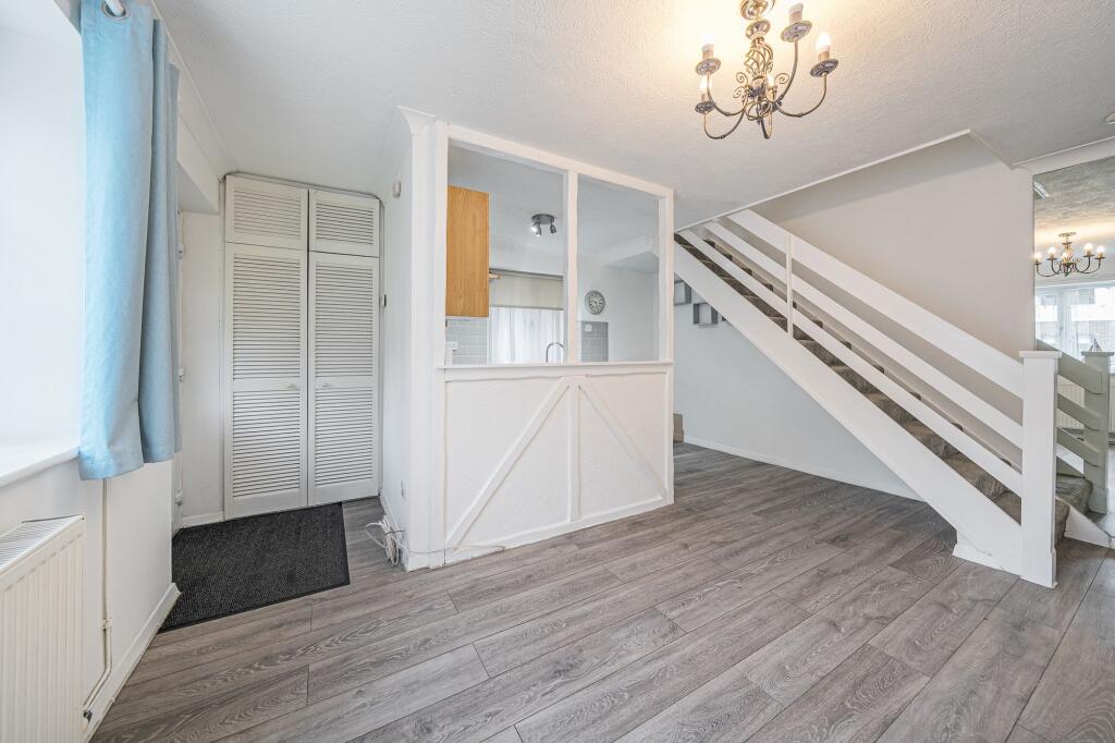 A perfectly positioned, two bedroom house in a popular riverside cul-de-sac in Upnor close to riverside, marina and beach. Open-plan living, front lawn area and parking and no forward chain