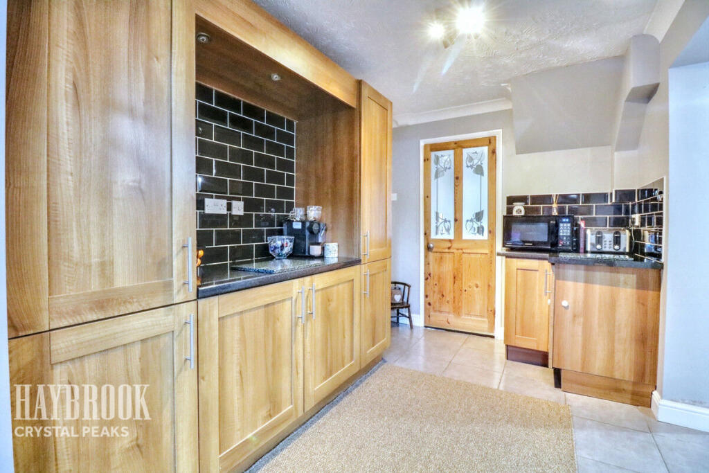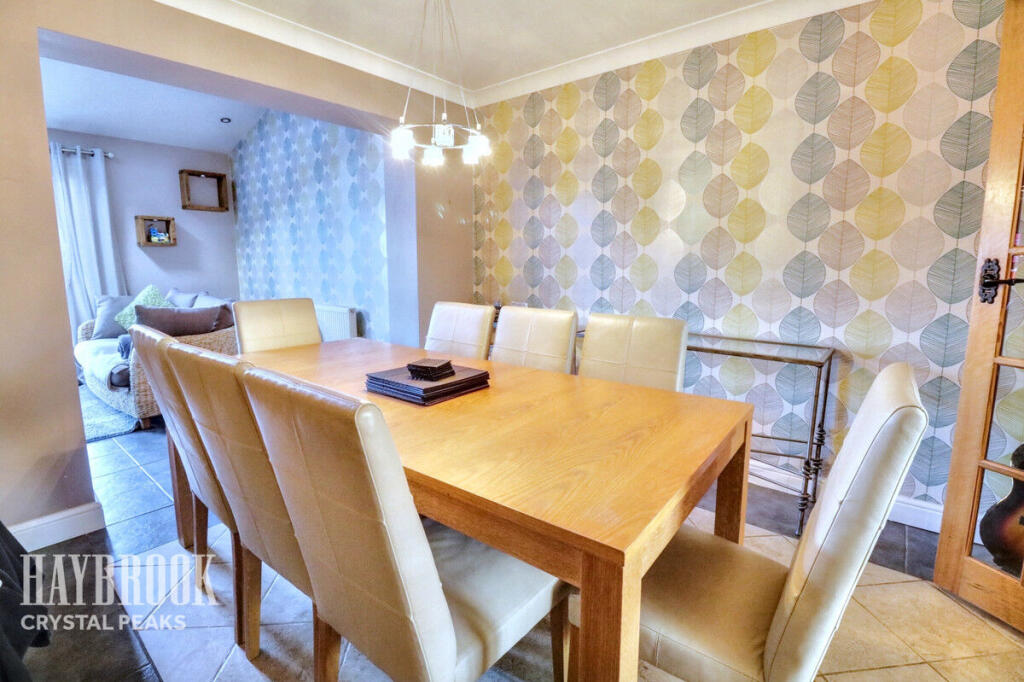 This four-bedroom property located on Chestnut Avenue in Killamarsh, North East Derbyshire, is presented by Haybrook Estate Agents. The property is a two-story semi-detached home that boasts a modern, updated interior, as showcased by its recently updated or refurbished kitchen and bathroom. The home features four bedrooms and a modern-style kitchen with ample cabinet space and black appliances. There’s also an attractive patio or paved area in the rear. The home’s layout includes a dedicated dining space and several living areas that make it family-friendly.