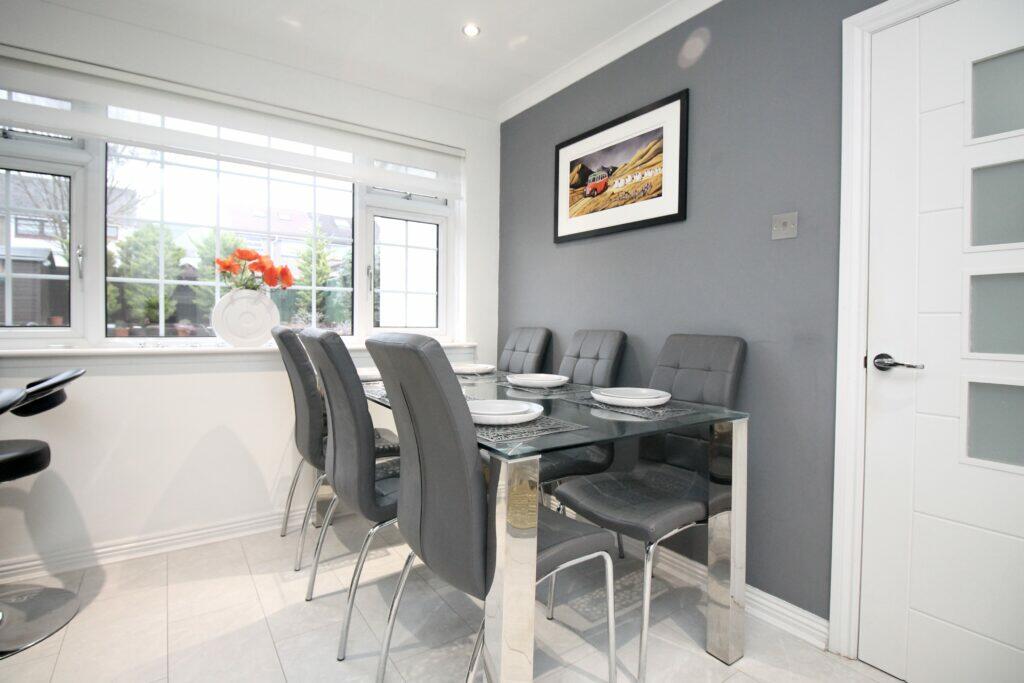 This four-bedroom detached villa is located in the desirable residential area of Bishopbriggs, East Dunbartonshire. The property benefits from an enviable position providing access to local amenities. The property’s interior is modern, with a well-designed and recently updated kitchen and bathrooms that will be attractive to potential buyers. The image also shows evidence of recent decorating and modern furniture, showcasing the property’s current excellent condition. The extensive rear garden has a good level of landscaping and privacy, making it a suitable space for family use. A key benefit for many families is the mentioned proximity of the property to local primary and Bishopbriggs Academy schooling. The property’s list price is within the range expected for similar properties in the area, making it potentially attractive in a competitive market. However, more detailed information on specific nearby amenities and precise plot size would enhance the overall assessment.