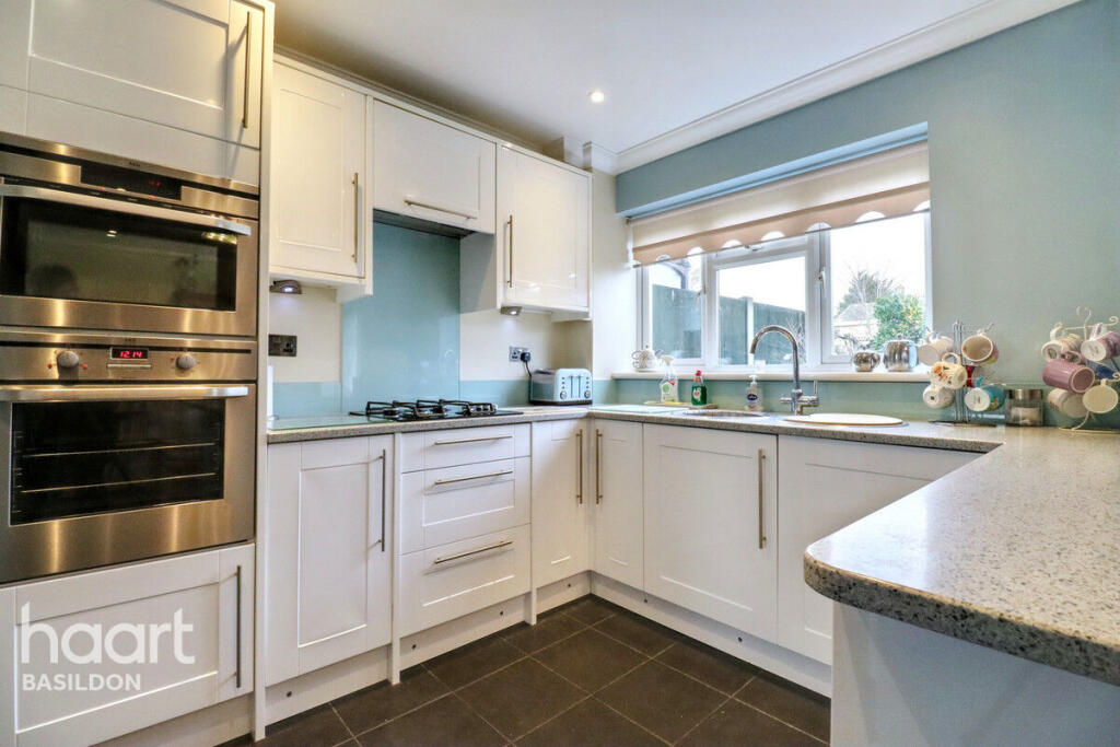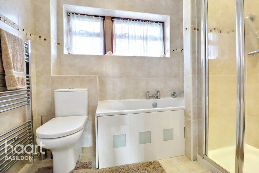 This is a three-bedroom terraced house in Basildon, Essex, listed by haart. The property features a modern kitchen and bathroom, and it includes a garden. While the house is in reasonable condition, some areas could benefit from updating. The location offers access to schools and transportation, but it’s not a prime location. The asking price of £300,000 appears to be in line with the local market and the property’s characteristics.