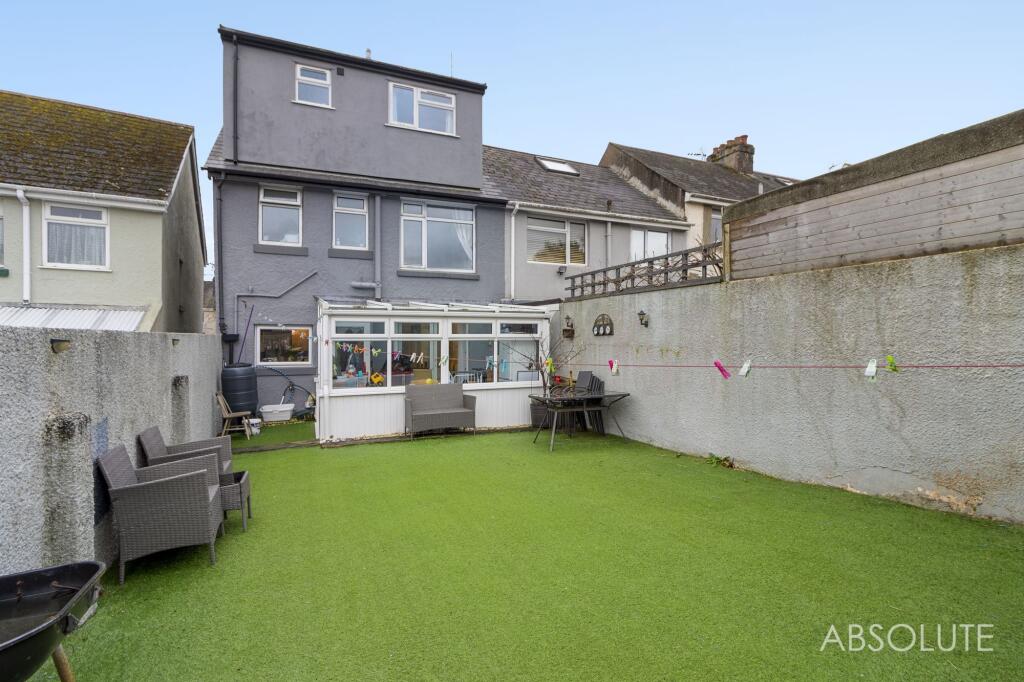 Extended 4 bed, 3 storey house in Paignton cul-de-sac. Lounge with fireplace, fitted kitchen, dining area, conservatory. Main bedroom with en-suite. Viewing recommended. Underpinned in 1995.
