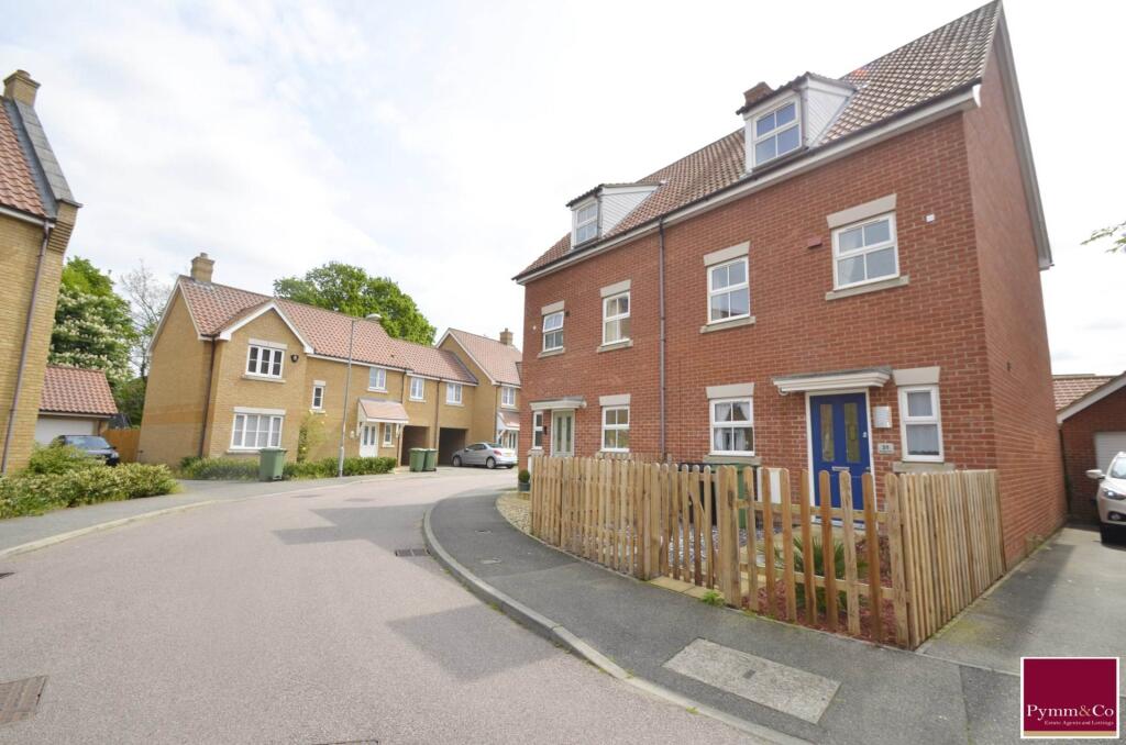 Pymm & Co are delighted to offer this stunning three storey semi-detached family home with a South East facing garden to the market. The property is situated on the popular Whispering Oaks development in the market town of Wymondham.