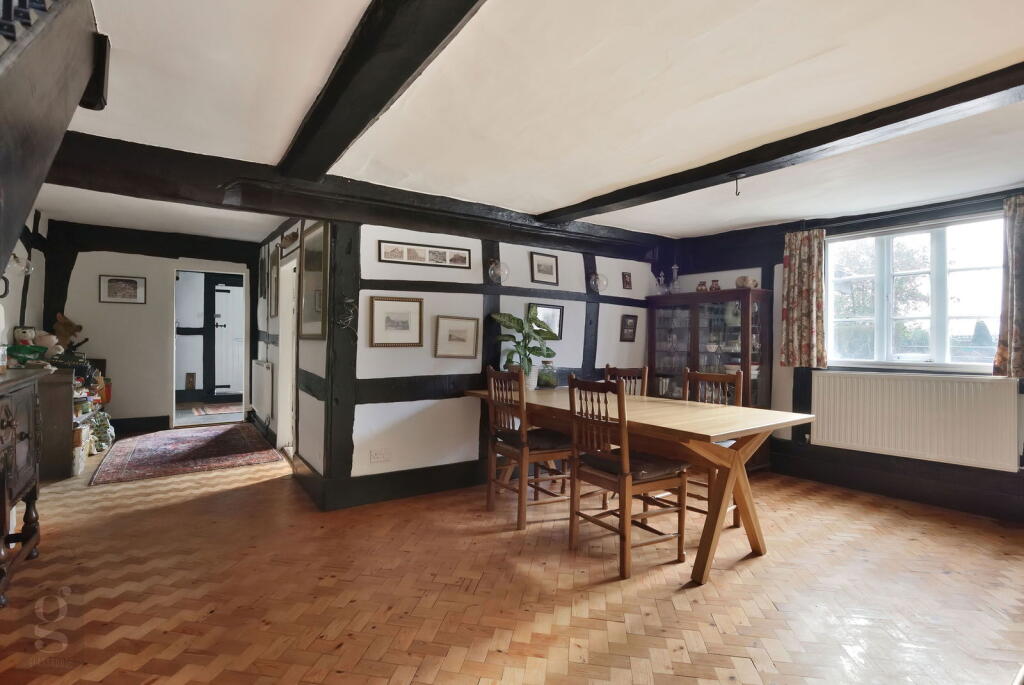 This property is a charming, well-maintained home located in the desirable village of Bosbury, Herefordshire. The property benefits from a picturesque setting and appears to be in good condition, with tasteful interior design and modern updates in the kitchen and bathrooms. The exposed beams and traditional features add character and charm. The presence of a garden and outbuildings is a significant plus. While the square footage is not provided, the list price of £875,000 is higher than the average for the area (£561,267), but the unique character, features, and possibly larger size of the property may justify this price point. More information on the exact square footage would be needed to provide a more definitive assessment of the price-to-size ratio.