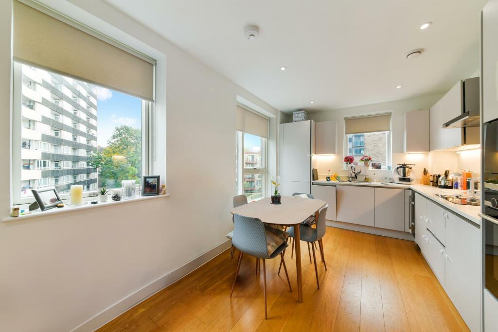 This two-bedroom, two-bathroom apartment in Guildford House, Tollgate Gardens, Kilburn (NW6 5FU) is presented by JOHNS&CO. The property boasts a modern interior with a contemporary kitchen, light-filled living areas, and good-sized bedrooms. Images show the interior is well-maintained and updated. The apartment’s proximity to Kilburn High Road offers convenient access to the Overground line, facilitating easy commutes into central London. Several schools are also within walking distance, making it a potentially appealing location for families. The building features a communal garden area, and although the apartment itself has minimal private outdoor space (a small balcony is shown), there is access to some greenery. While the area is not considered a prime location compared to others in London, the proximity to amenities, transportation, and suitable schools make it reasonably desirable. The property is listed at £800,000; given its location and condition and the lack of information on local pricing per sqft, a precise determination of its value for money can’t be made with certainty, although at present it appears to be competitively priced with similar listings nearby.
