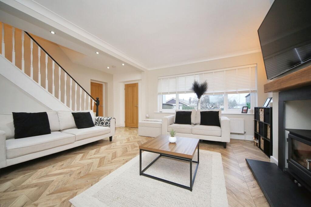 This four-bedroom, two-bathroom property located on Hornsey Grove in Winstanley, Wigan presents a modern and well-maintained home. The recent renovation is evident throughout, highlighted by the contemporary kitchen, updated bathrooms, and stylish interior design. The use of light colours and herringbone flooring creates a bright and spacious atmosphere, further enhancing the property’s appeal. The exterior is equally impressive, featuring a neat front garden and a patio area. The property’s location in Winstanley is a key selling point, given the presence of highly-rated primary schools and relatively convenient access to train transport. The proximity to these amenities increases the property’s desirability, particularly for families with young children. However, more information regarding the plot size and exact square footage would be beneficial for a more comprehensive evaluation. Further comparative data on the precise sqft of nearby properties would also allow for a more precise assessment of the list price, allowing the price score to be refined. Overall, the property presents a well-renovated, attractive home in a desirable location, though more data would be needed to accurately gauge the market value compared to others in the immediate area and price per sqft.