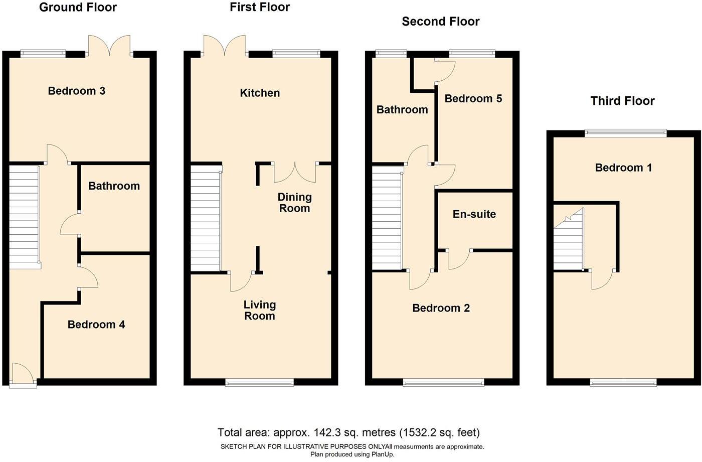 A good size mid terrace town house which offers five lovely Bedrooms and is serviced by three Bathrooms which includes an En-suite facility. This home would offer itself as an ideal Crew House, holiday home or substantial family accommodation. The mid floor offers the Lounge and Dining Area wit...