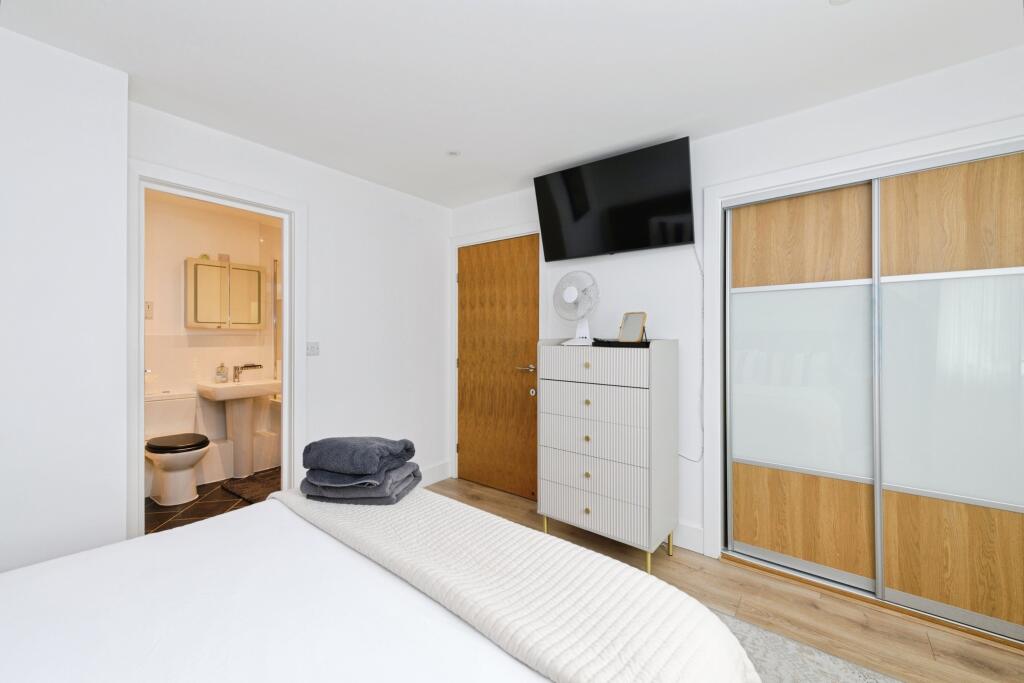 This is a modern two-bedroom, two-bathroom apartment located on Church Street in Epsom. The property is in excellent condition and benefits from its proximity to local amenities and transport links. The apartment is approximately 610 sq ft and is listed for £335,000. While the price per square foot is above the local average, the condition of the property warrants the premium.