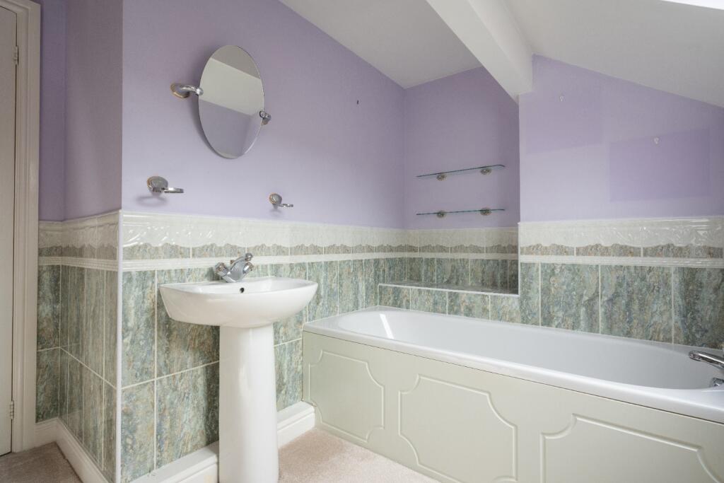 This is a semi-detached bungalow in Shaw, Oldham, featuring four bedrooms and two bathrooms. The property includes a modern kitchen and appears to be well-maintained. It benefits from front and back gardens and off-street parking. While some areas might benefit from cosmetic updates, the property is in generally good condition. The location offers access to local schools and amenities, with reasonable transport links. The asking price is slightly above the local average but reflects the property’s size and features.