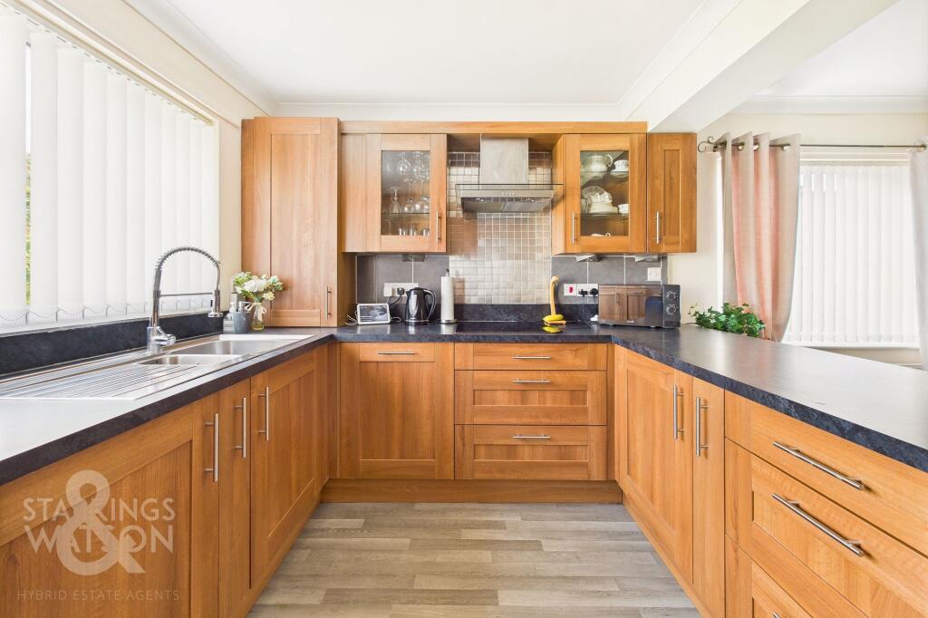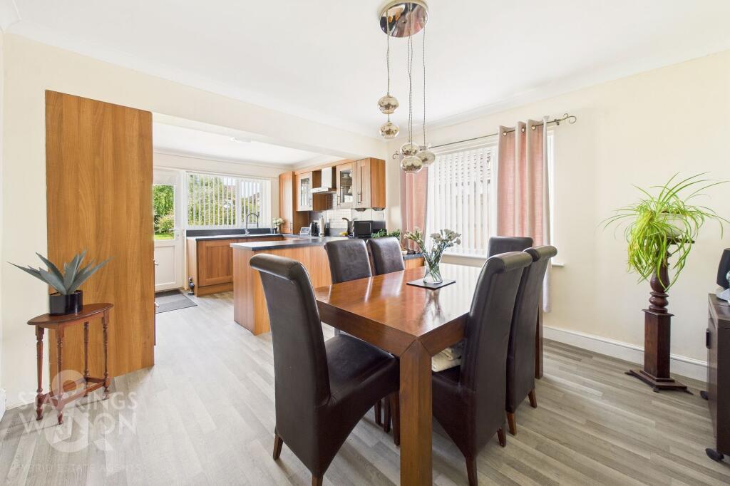Situated in the heart of HELLESDON, this DETACHED BUNGALOW offers a perfect blend of comfort and style. IMMACULATELY PRESENTED, the property boasts a 12' SITTING ROOM with a charming FEATURE FIREPLACE, leading onto a spacious DUAL ASPECT 20' open plan KITCHEN & DINING ROOM, offering a full suite ...