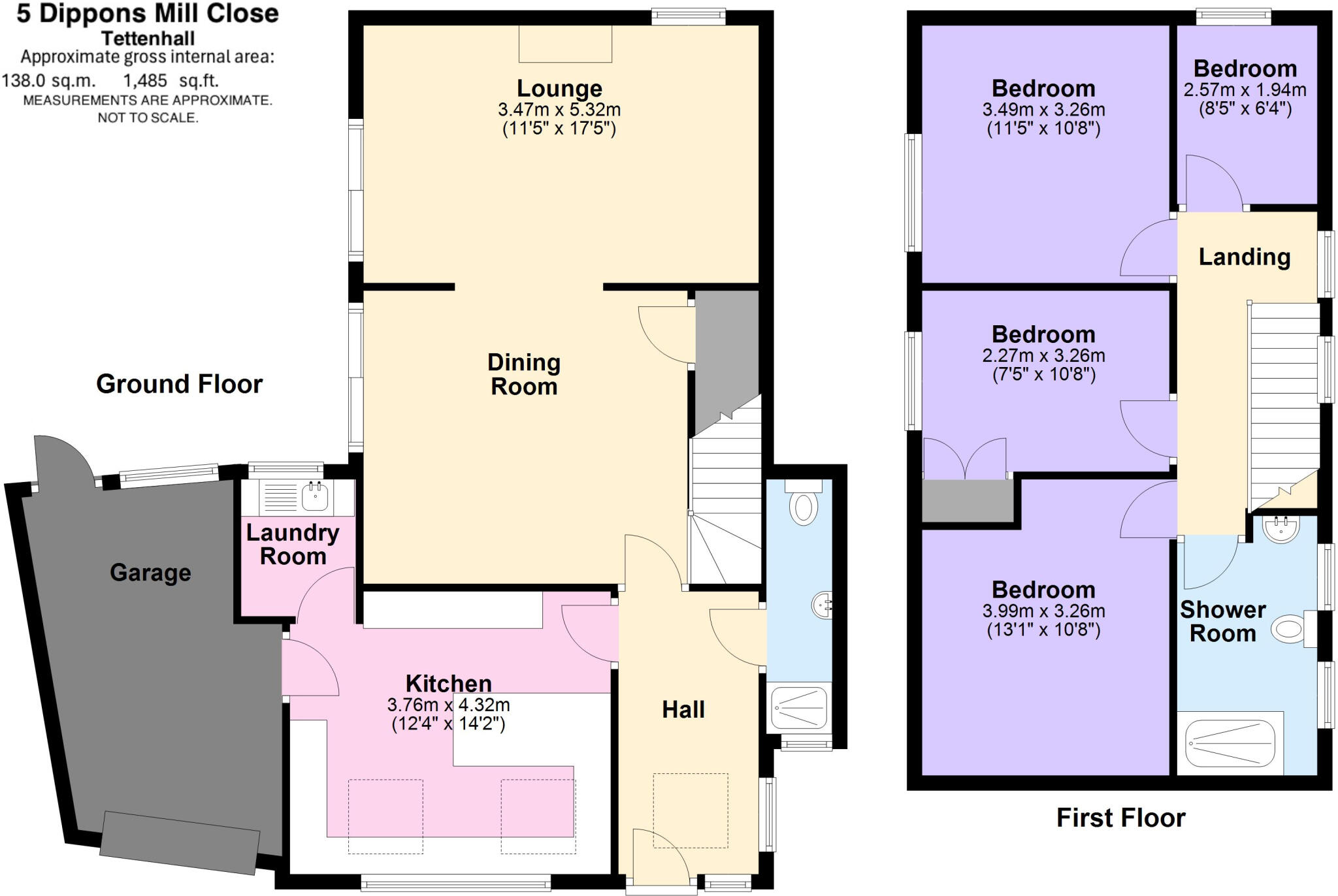 The property is located in Dippons Mill Close, Tettenhall Wightwick, Wolverhampton, WV6 8HH. It\’s a detached house with 4 bedrooms and 2 bathrooms, spanning 1,568.30 sqft on a 1,485.42 sqft plot. The list price is £475,000.