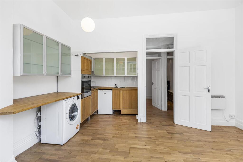 A quaint one bedroom apartment - Set in a stunning semi detached period conversion - On the lower slopes of this exclusive road in Hampstead - Use of rear communal gardens - Gorgeous curved front bay - Share of freehold - Own entrance - Ground floor flat - 16ft open plan reception...