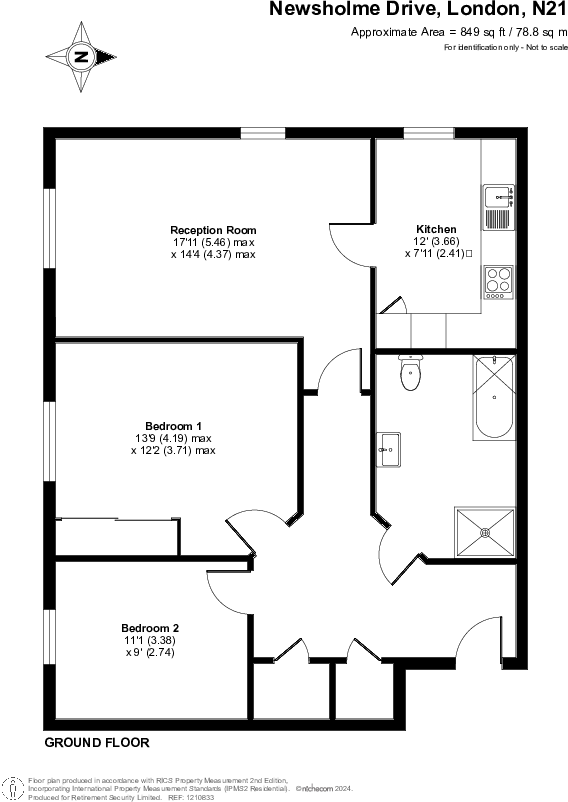A ground floor two bedroom, retirement apartment, redecorated throughout with new carpets, set within Retirement Security's Blake Court in Winchmore Hill, N21, a development for the over 65's.