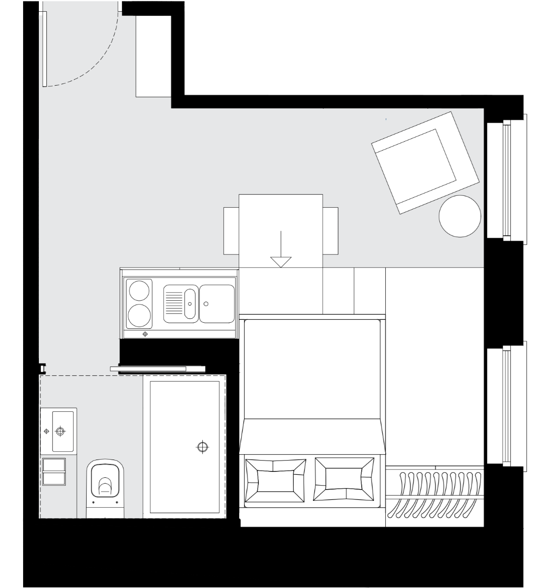 Large, modern, fully furnished studio in Hampstead. Enjoy flexible contracts and unlock discounts, offers & events through our app!