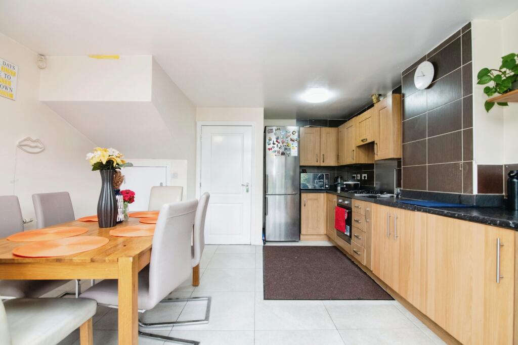 This four-bedroom, three-bathroom terraced house located in West Bromwich, West Midlands, is listed at £300,000. The property boasts a sizeable garden, a notable feature considering the often-limited outdoor space of terraced housing. The interior showcases a modern kitchen and dining area with good natural light. The bathrooms are relatively clean and appear functional, yet could benefit from some minor updating or freshening. The bedrooms offer ample space, although some might perceive the decor as somewhat dated. While the photographs show a well-maintained property, some minor maintenance or updates might improve its overall presentation. The location is good, within close proximity to well-regarded schools. Public transportation access is available with train stations approximately 1-3km away. More detail regarding local amenities such as shopping and other facilities would be valuable in a thorough assessment. The price point seems fairly aligned with comparable nearby properties, making it potentially good value, though precise square footage data for comparable properties would enhance the accuracy of this analysis.