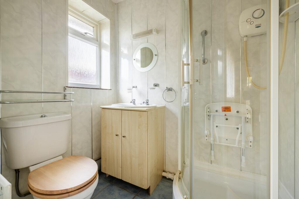 Offered with no onward chain, a detached bungalow with great scope to modernise and improve and just a short walk to the High Street. Two Bedrooms, two bathrooms, garage to front and rear.