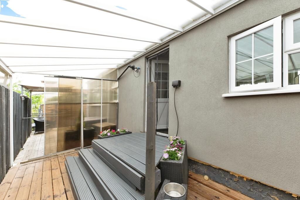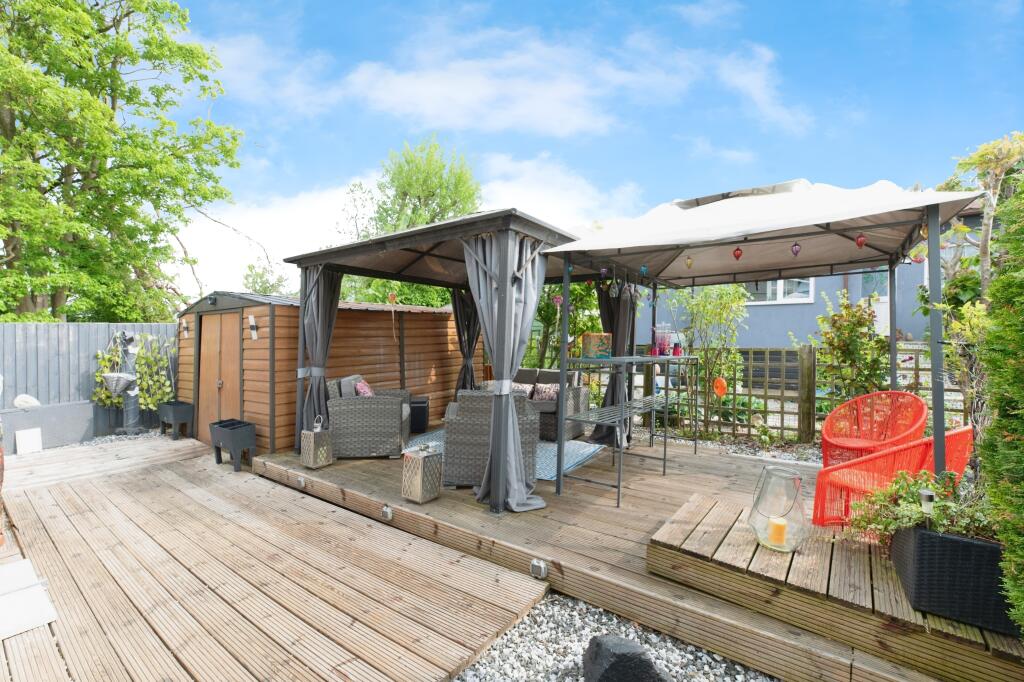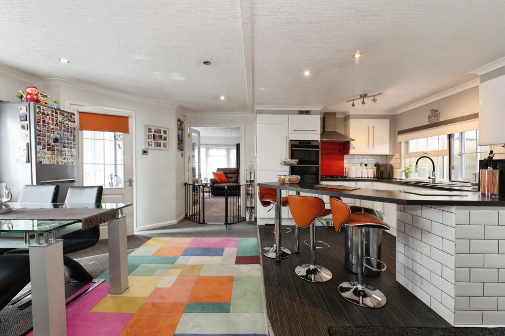 This park home is located in Thameside, Chertsey, and benefits from being close to several South Western Railway stations, including Addlestone (2.04 km), Chertsey (2.69 km), and Shepperton (4.31 km). There are also a number of schools within a reasonable distance, such as Philip Southcote School (1.24 km) and Stepgates Community School (1.42 km). The property itself appears to be well-maintained and modern, with a contemporary kitchen and bathrooms. The images show a good-sized garden with a decked area and gazebo, offering outdoor space. While the plot size is listed as 0.00 sqft, the images clearly show a substantial garden area. The list price of £375,000 is significantly lower than the average house price in the area (£788,680), and also lower than nearby comparable properties. However, it is important to note that this is a park home, which typically commands lower prices than traditional houses. Considering its condition, location, and amenities, the price appears reasonable for this type of property.
