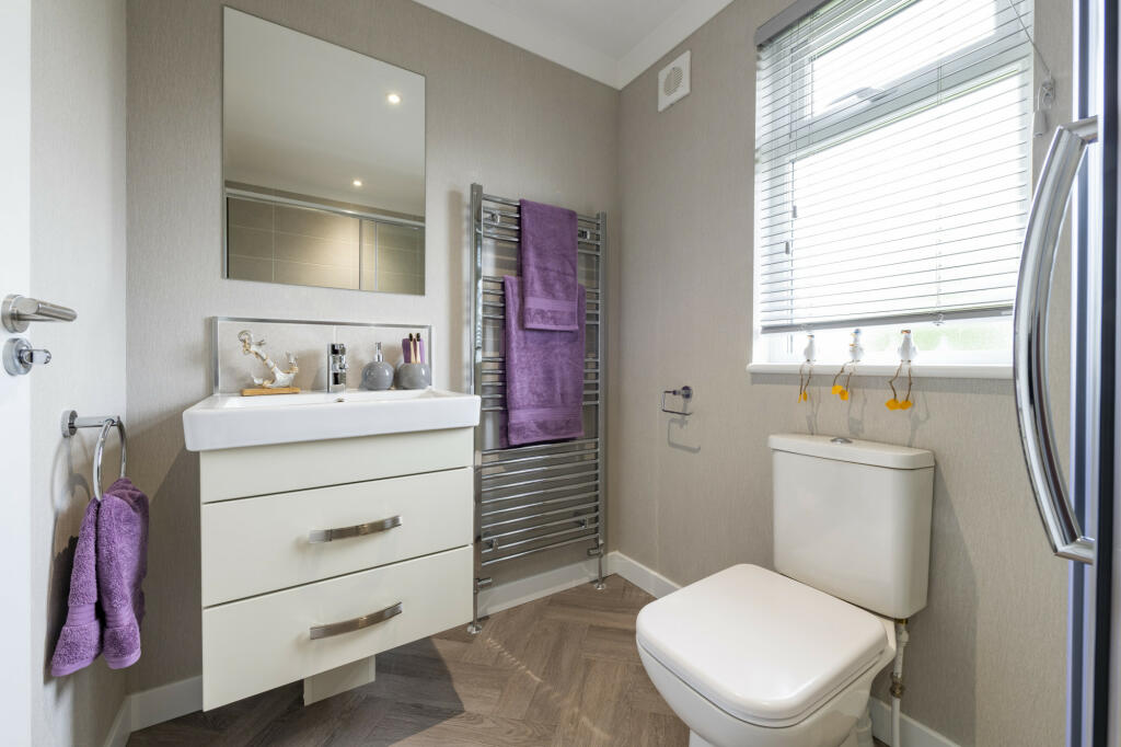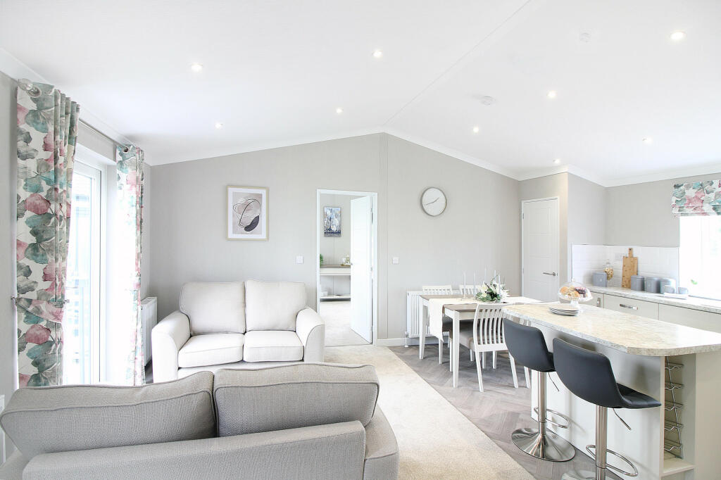 This is a new, two-bedroom, two-bathroom park home located in Gatenby, near Northallerton, North Yorkshire. The property boasts a modern design and appears to be in excellent condition based on the provided images. The interior is finished to a high standard, with modern fixtures and fittings throughout. The home features an open-plan living area, a well-equipped kitchen, and two bedrooms. It also benefits from driveway parking and a small grass area immediately adjacent. The property is situated in a rural setting, yet remains relatively close to the town of Northallerton and its transport links, along with several schools. While the lack of precise plot size information is notable, and the immediate vicinity seems to lack immediate local shops and amenities, the overall proximity to larger towns and excellent condition of the property make it a reasonably priced option. The relatively low price compared to other nearby properties and the current market climate for this sort of park home, might also make it attractive to some buyers. Buyers should however conduct further due diligence relating to the park home ownership and associated fees.