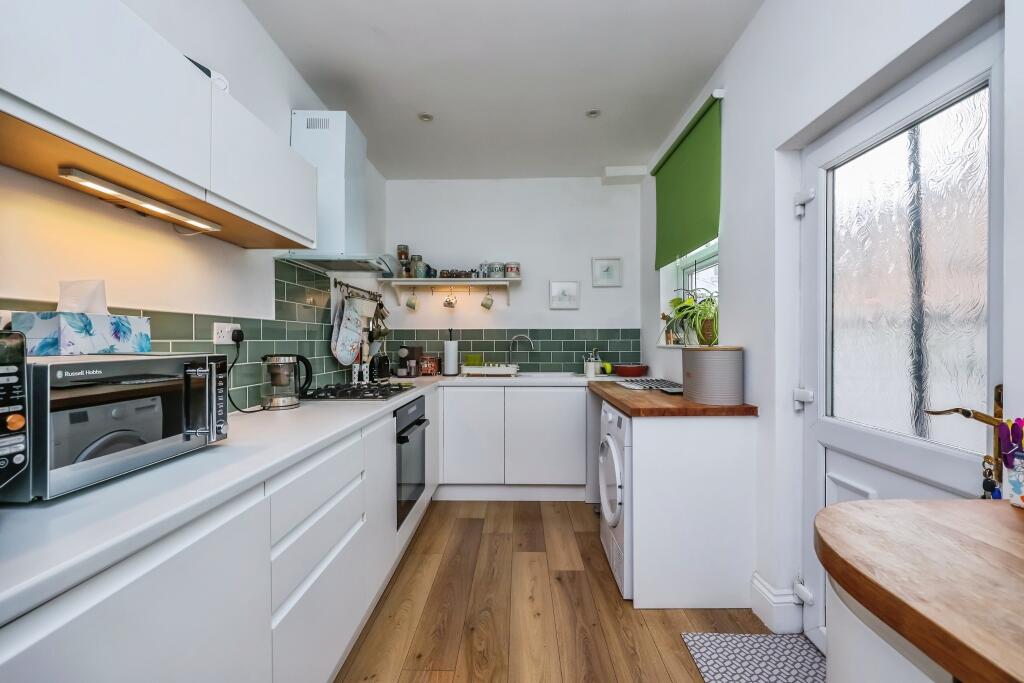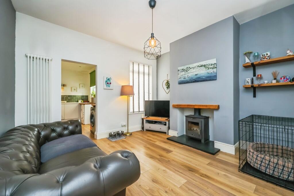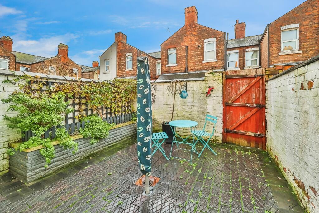 This is a two-bedroom terraced house in The Meadows, Nottingham. The property benefits from a modern kitchen and bathroom, and it has a small garden. While the interior appears to be in good condition, the exterior and garden could use some attention. The property is located near schools and transportation links, which is a plus. However, the asking price seems high compared to other properties in the area, especially when considering the average price per square foot.