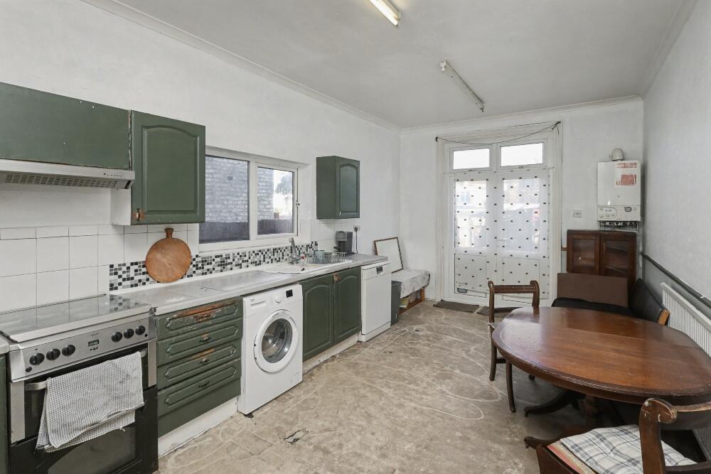 Spacious three bed family home in North London with open plan kitchen diner, living room, rear garden and gas central heating. On street parking. No chain and searches available.