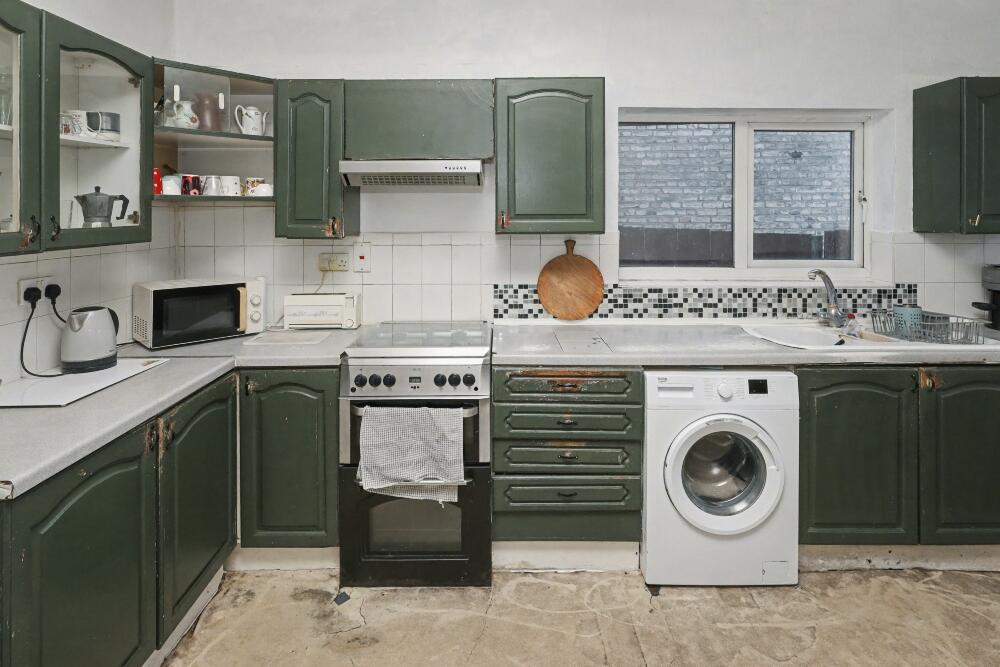 This is a three-bedroom terraced house in Coppetts, Barnet, London. The property is listed for £575,000 by Sail Homes. The house is located in a family-friendly area, close to schools and transportation. However, the property requires significant renovation, as evidenced by the dated kitchen and bathrooms. The house has a garden. The price is reasonable given the condition and location, offering an opportunity for renovation and value addition.