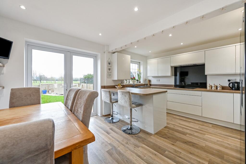 This four-bedroom terraced house in Romsey, Hampshire is located on The Thicket, within the Romsey Tadburn locality. The property benefits from being close to several schools, including The Mountbatten School (0.47km), Halterworth Primary School (0.60km), and Cupernham Infant & Junior Schools (1.70km), all of which received a “Good” Ofsted rating. Romsey train station is also within reasonable proximity (2.40km), offering connections via Great Western Railway. The house itself appears to be in excellent condition, with a modern kitchen and updated bathrooms. Images show a well-maintained interior and exterior, including a patio and garden area overlooking a green space. The plot size is not specified, but the garden appears relatively small. Compared to other properties in the area, the list price of £450,000 seems slightly above average, considering similar properties on The Thicket have sold for between £240,000 and £435,000. However, the modern condition and desirable location could justify a higher price. The average price per sqft in the area is £426, and this property is larger than average at 1362.71 sqft. Therefore, while slightly above average, the price is not unreasonable given the factors mentioned.
