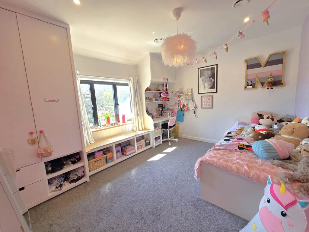 A striking and unique, detached residence built to an extremely high standard, with beautiful views across lush farmland to the back. Offering over 2200 sq. ft of beautifully appointed accommodation. A stunning family home, not to be missed. NO CHAIN.