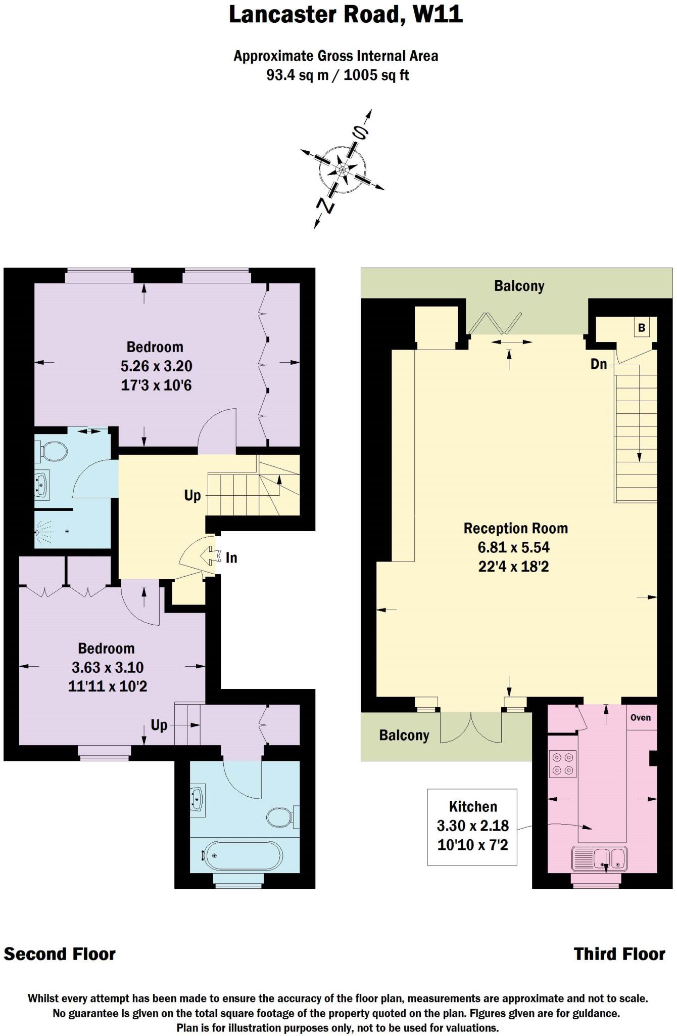 A beautifully presented two bedroom duplex flat (93 sq m/1,005 sq ft approx.) on the second and third floors of this period conversion in Notting Hill, W11.