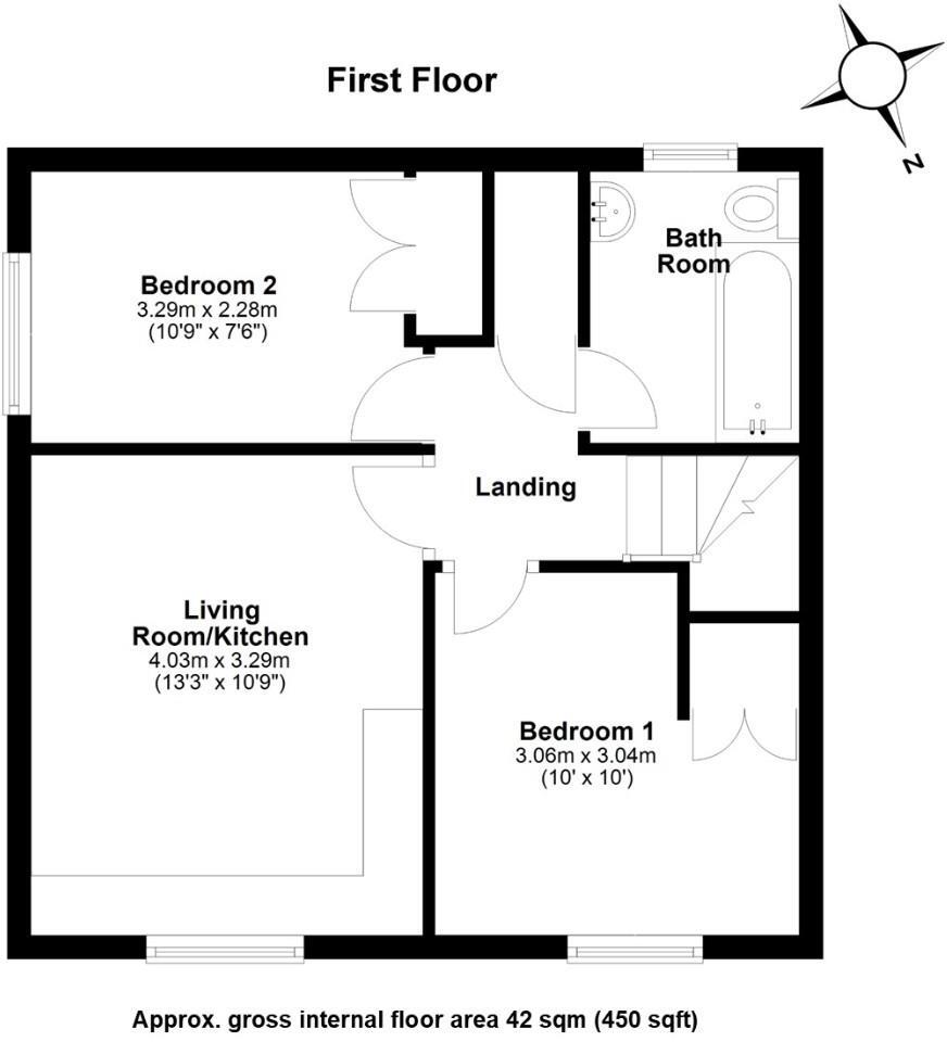 Land: The property includes a garden, as shown in the images. The garden is of a modest size but provides outdoor space. The presence of sheds and a patio area adds to the usability of the space. Given the plot size of 450 sqft, a land score of 6 out of 10 is given.