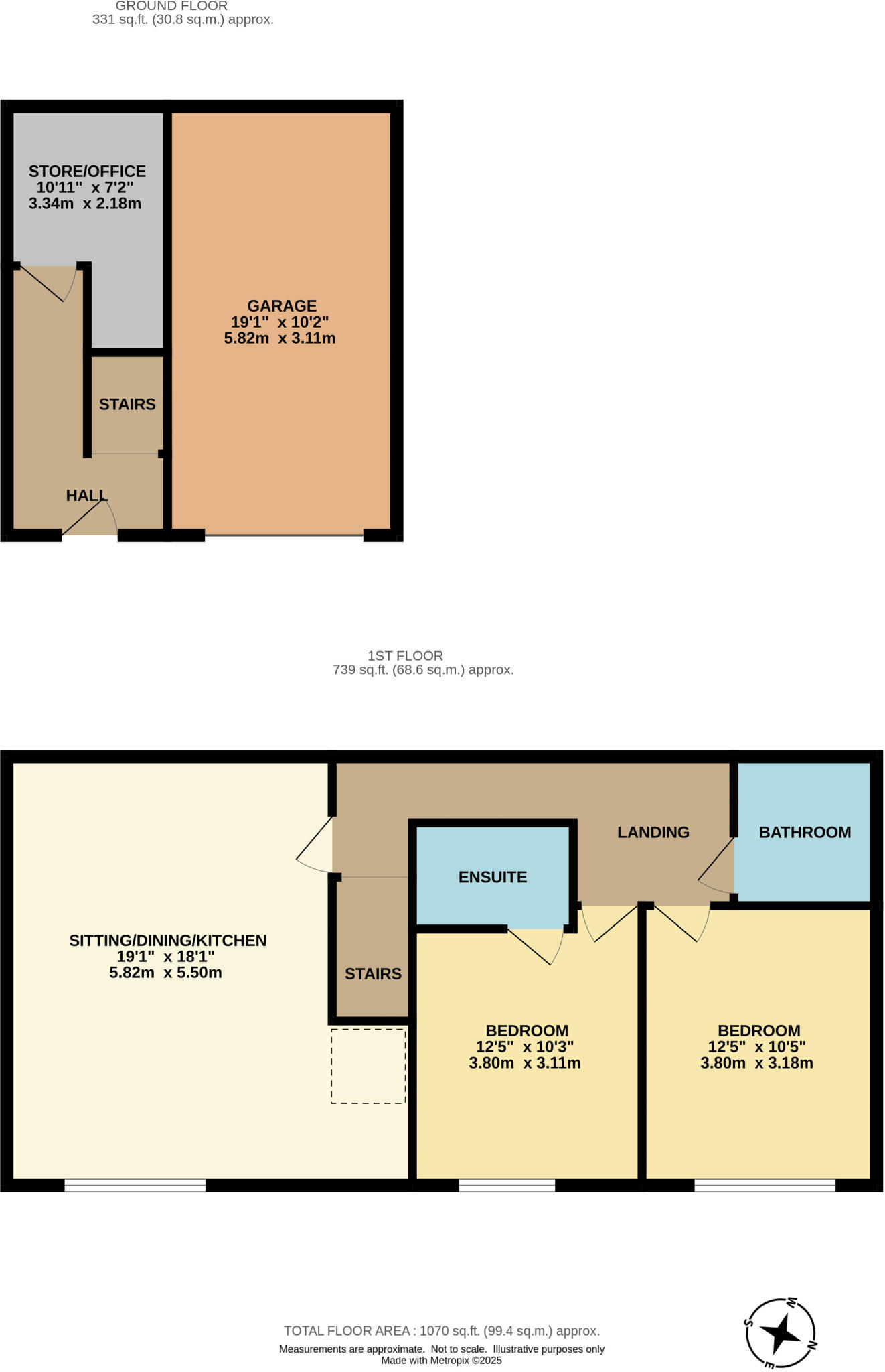 Spacious no chain two double bedroom coach house with garage & parking, two bathrooms and open plan reception/kitchen.