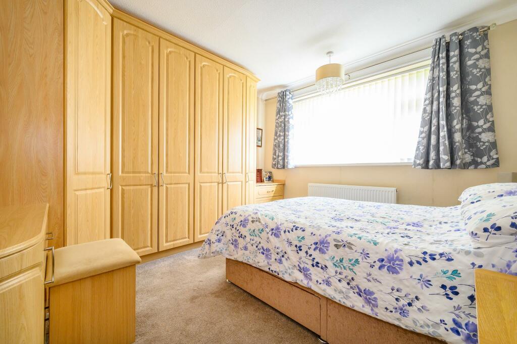 This two-bedroom semi-detached bungalow in Wakefield, West Yorkshire, presents itself as a comfortable and well-maintained family home or suitable downsize option. The property boasts a recently updated kitchen and bathroom, adding to its appeal. The photographs showcase a clean and tidy interior, suggesting that the property is ready for immediate occupation. The exterior is equally appealing with a well-maintained garden and a substantial, modern shed, providing ample outdoor space for relaxation or recreation.