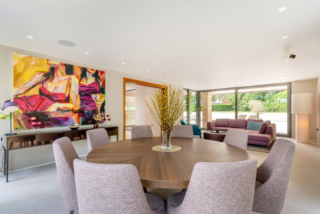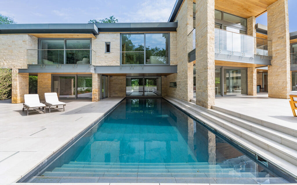 This is a substantial detached property located in Hall Grounds Drive, Colston Bassett, Nottinghamshire. The house boasts 5 bedrooms and 5 bathrooms.From the images, the property appears to be in excellent condition, showcasing modern design and high-quality finishes throughout. The interior features a contemporary kitchen, stylish bathrooms, and spacious living areas. The property also benefits from large windows that provide ample natural light and views of the surrounding landscape.The property includes a well-maintained garden and a swimming pool, offering outdoor recreational space. There also appears to be a sauna and a study.The average price per square foot in the area is £523. While the square footage of the property isn’t listed, the asking price of £3,800,000 suggests this is a high-end property. Nearby listings indicate similar properties are valued in the millions. The property is located close to several schools, including Colston Bassett School which is rated as Good by Ofsted. Bingham and Radcliffe train stations are within a reasonable driving distance, offering convenient transportation links.