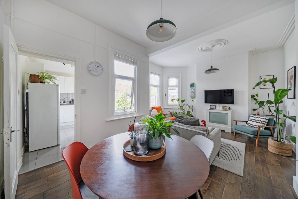 A charming home with two inviting reception rooms, a sleek kitchen opening onto a private garden, and three bright bedrooms upstairs, this property offers a warm and practical layout ideal for family living, and offers an abundance of built-in storage space throughout.