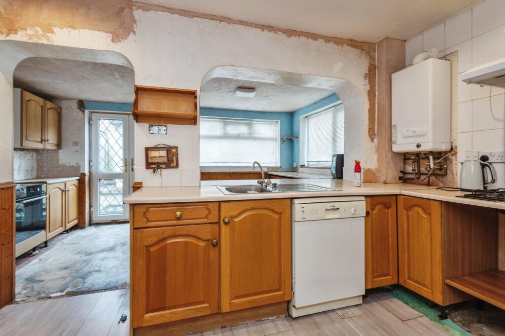 The property appears to be in need of some modernisation and updating. The kitchen, in particular, shows significant wear and tear and would likely require a full refurbishment. Other areas of the property also show signs of needing attention, impacting the overall condition. While the property has a small garden, its size is modest.