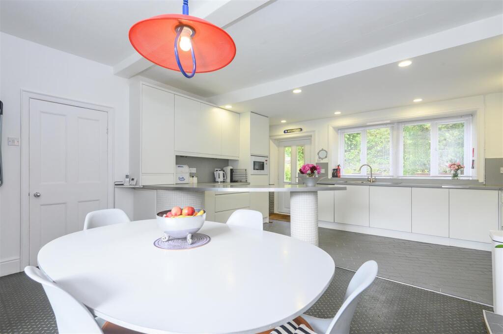 This is a substantial character property located in a desirable semi-rural location. The house offers five bedrooms and three bathrooms, making it suitable for a large family. The property benefits from a large garden and off-street parking. While the price per square foot is below the local average, the overall list price is high compared to similar properties in the area. The property is in good condition and has been modernised, retaining its traditional charm. The proximity to a highly-rated school adds to the appeal for families.
