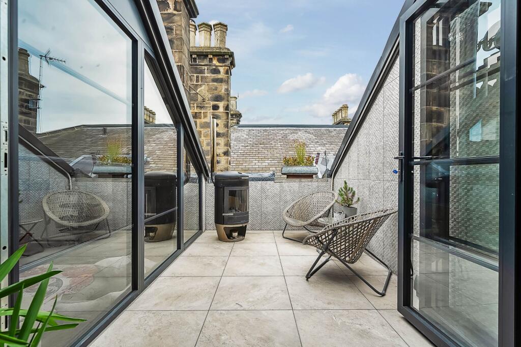 A breath taking 3 / 4 bedroom duplex apartment of great proportions occupying part of this handsome Stray side Villa enjoying tasteful bespoke interiors with elevated far reaching views across the York Place Stray parkland with the rare advantage of a private roof top terrace garden, private rear...