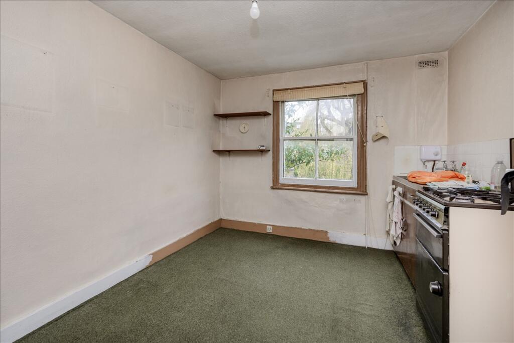 This is a one-bedroom flat on Iffley Road in Hammersmith. The location is excellent, with good access to schools, transportation, and local amenities. However, the property requires extensive renovation, as evidenced by the dated fixtures, worn carpets, and damaged walls. The asking price of £475,000 reflects the condition of the property and the need for significant investment to bring it up to modern standards. The flat does not come with a garden.