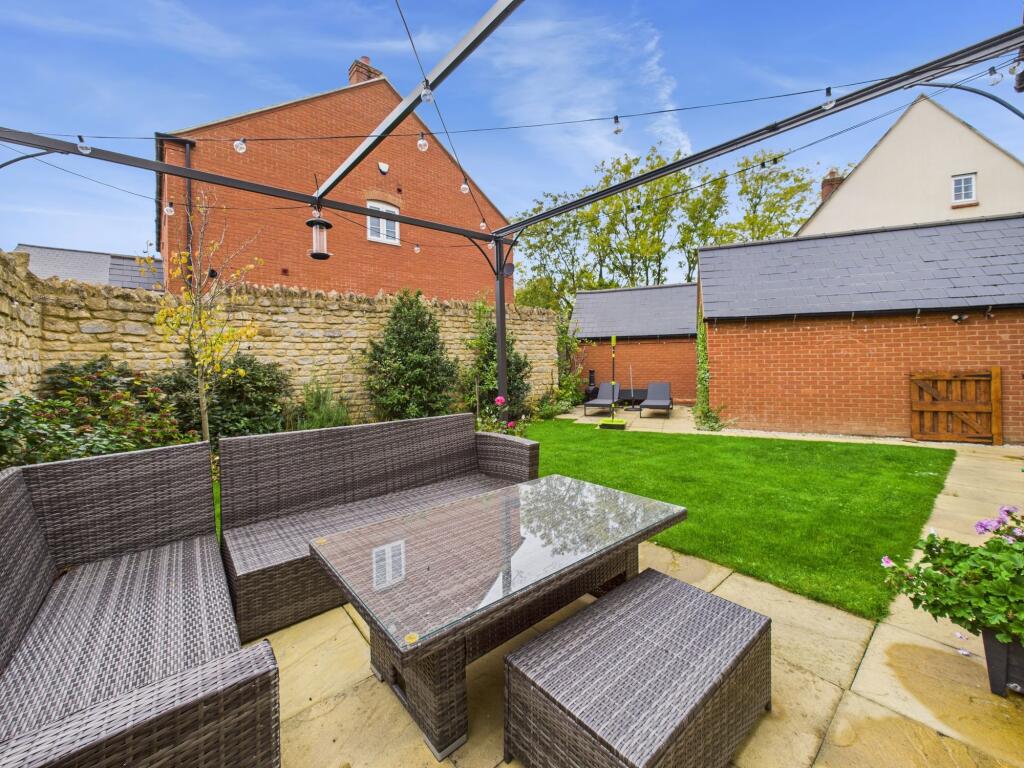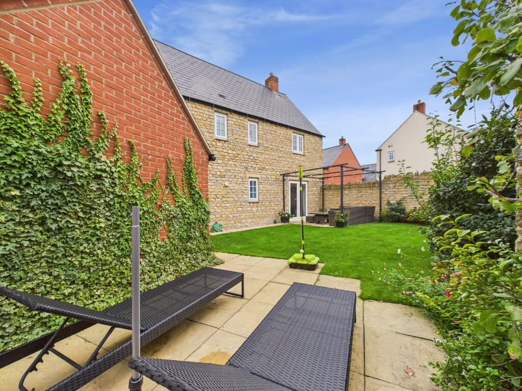 Modern stone built detached family home in Silverstone village. Three bedrooms with ensuite to master, family bathroom, kitchen/dining room, sitting room and utility/cloakroom. Detached garage, driveway parking and fully landscaped south/west facing garden. Built by Bovis Homes in 2016.