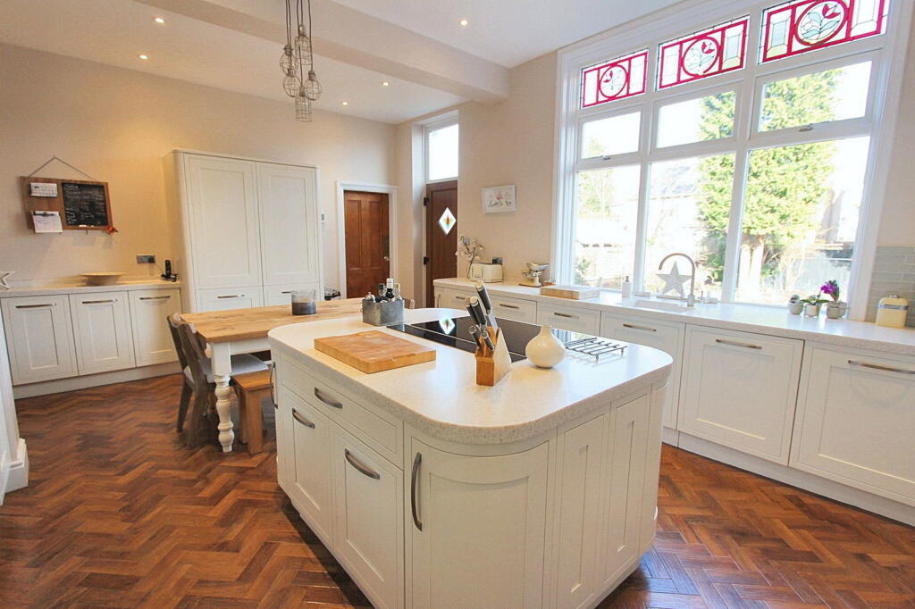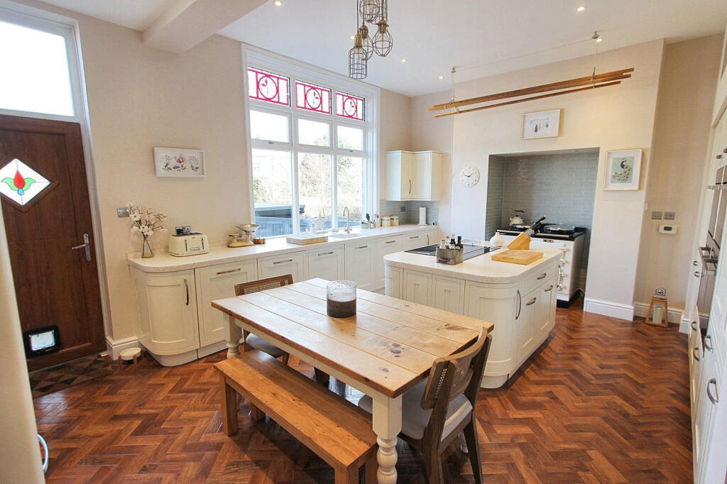 Lea Road, Heaton Moor is located in the Heatons North area of Stockport, Greater Manchester. The property is a semi-detached house with six bedrooms and three bathrooms. While the square footage and plot size are not provided, the list price is £1,200,000. The average house price in the area is significantly lower at £370,304, with an average price per square foot of £352. The property appears to be a period property, well-maintained and presented to a high standard. The images show a traditional style with modern updates, including a recently renovated kitchen and updated bathrooms. The property benefits from a substantial garden, which is a significant asset in the UK housing market. The proximity to several highly rated schools, such as Heaton School (Outstanding Ofsted rating), and convenient access to public transportation, including Heaton Chapel train station within a short distance, makes the location highly desirable. This contributes positively to the property’s overall value. Considering the significantly higher list price compared to the area average, the price may be considered high, especially given that the property’s square footage and plot size are unknown. However, the excellent condition, desirable location, and substantial garden could justify a premium price. A detailed square footage analysis would be needed to definitively assess the price per square foot and determine whether the list price aligns with market values for comparable properties in the area. Further investigation into the size of the plot would also be needed to fully assess the value of the land.