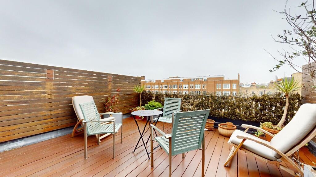 Boutique 3-bed, 2.5-bath Cadogan Square apartment with lift, private terrace, elegant interiors, and en-suites. Steps from Harrods, Knightsbridge & Chelsea boutiques, offering a true luxury London experience.